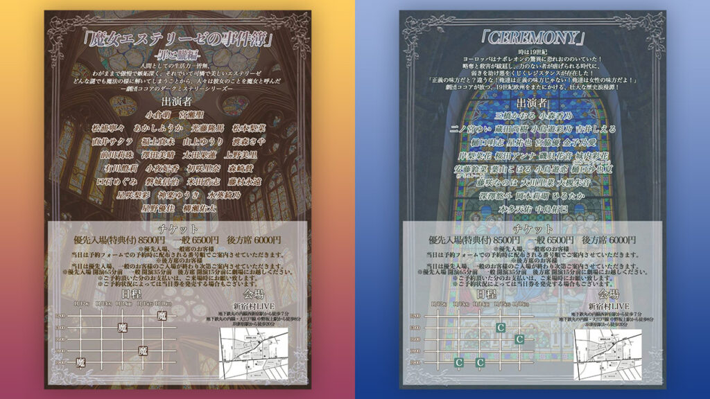 客演情報【直井サクラ出演情報】劇団ココア8周年記念公演「魔女エステリーゼの事件簿」×「CEREMONY」
