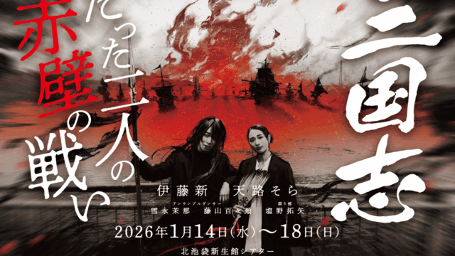 外部案件【加東岳史・けんちゃん 脚本・演出】国産本マグロ「三国志〜たった二人の赤壁の戦い」【外部案件】 加東岳史が所属するエンタメユニット「国産本マグロ」のコント公演「三国志〜たった二人の赤壁の戦い」に、加東岳史とけんちゃんが脚本・演出として参加いたします。国産本マグロ公演『三国志〜たった二人の赤壁の戦い』2026年1月14日(水)〜1月18... 2026.01.04外部案件